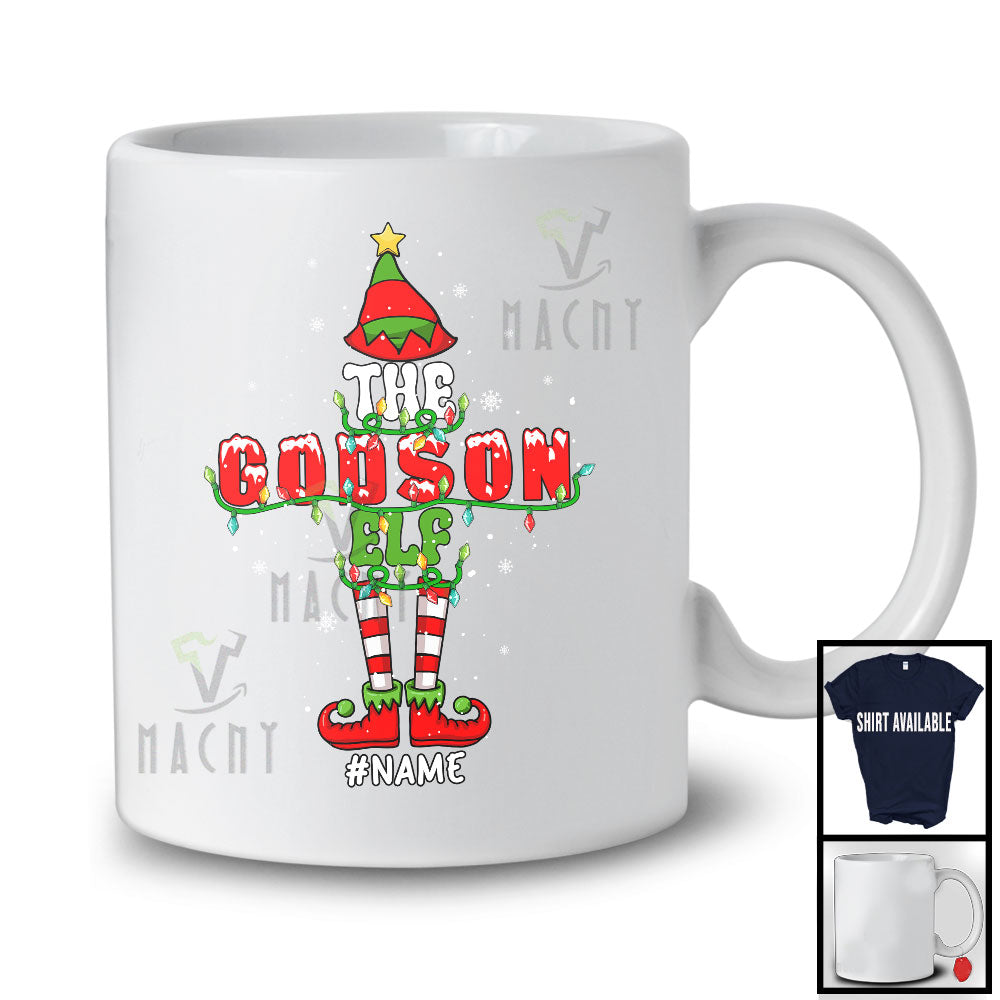 Personalized Custom Name The Godson Elf; Wonderful Christmas Lights Elf Pajamas; Family T-Shirt