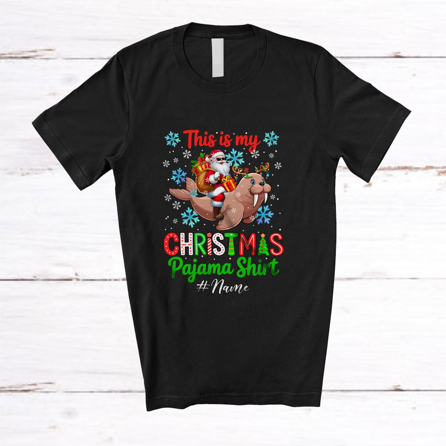 Personalized Custom Name This Is My Christmas Pajama Shirt; Lovely Santa Riding Walrus Reindeer T-Shirt