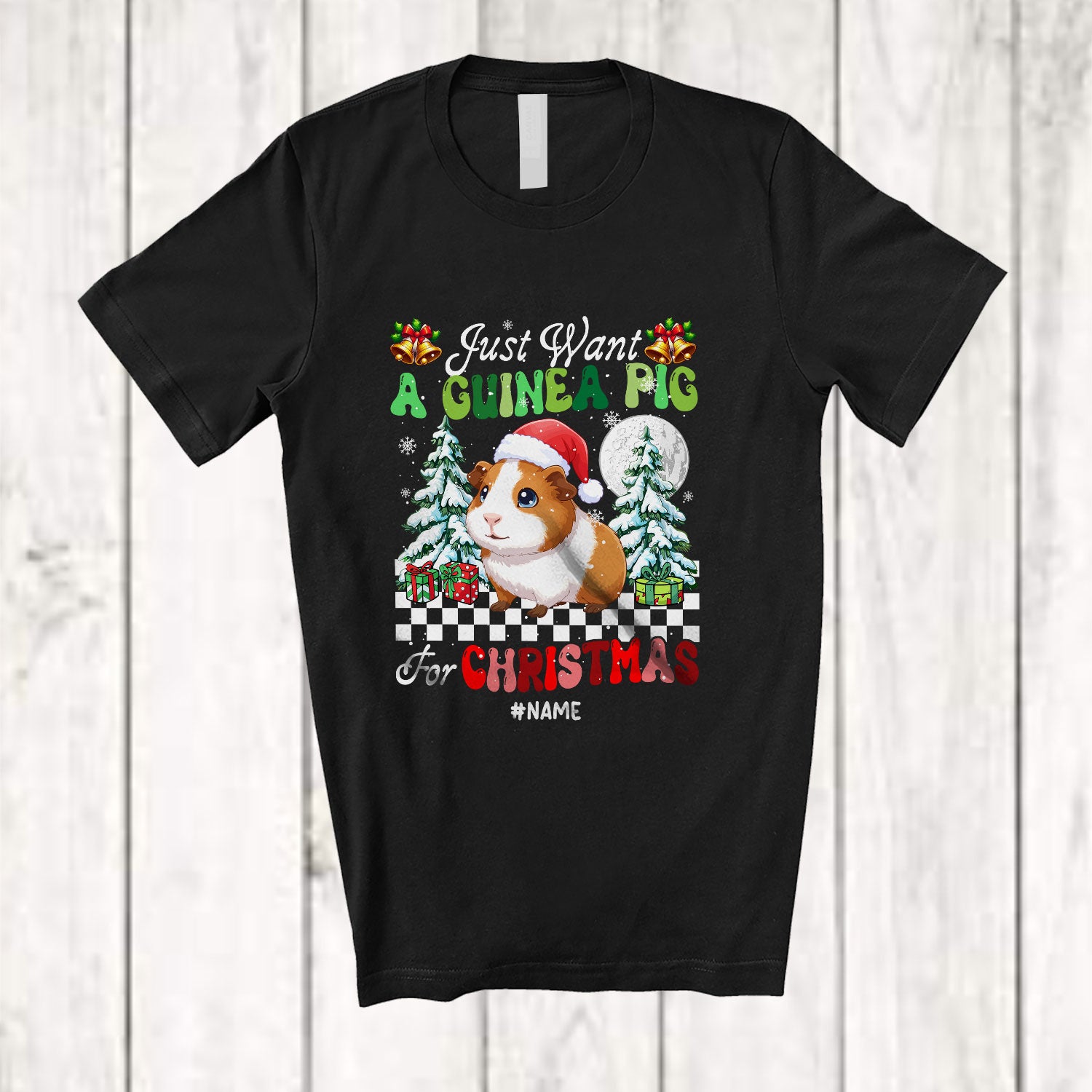 • Personalized Custom Name Want A Guinea Pig For Christmas; Amazing X-mas Tree Santa Animal T-Shirt. This cotton t-shirt is a durable staple product with a classic fit. One of the most popular items, it has a relaxed style made for everyday and casual wear.