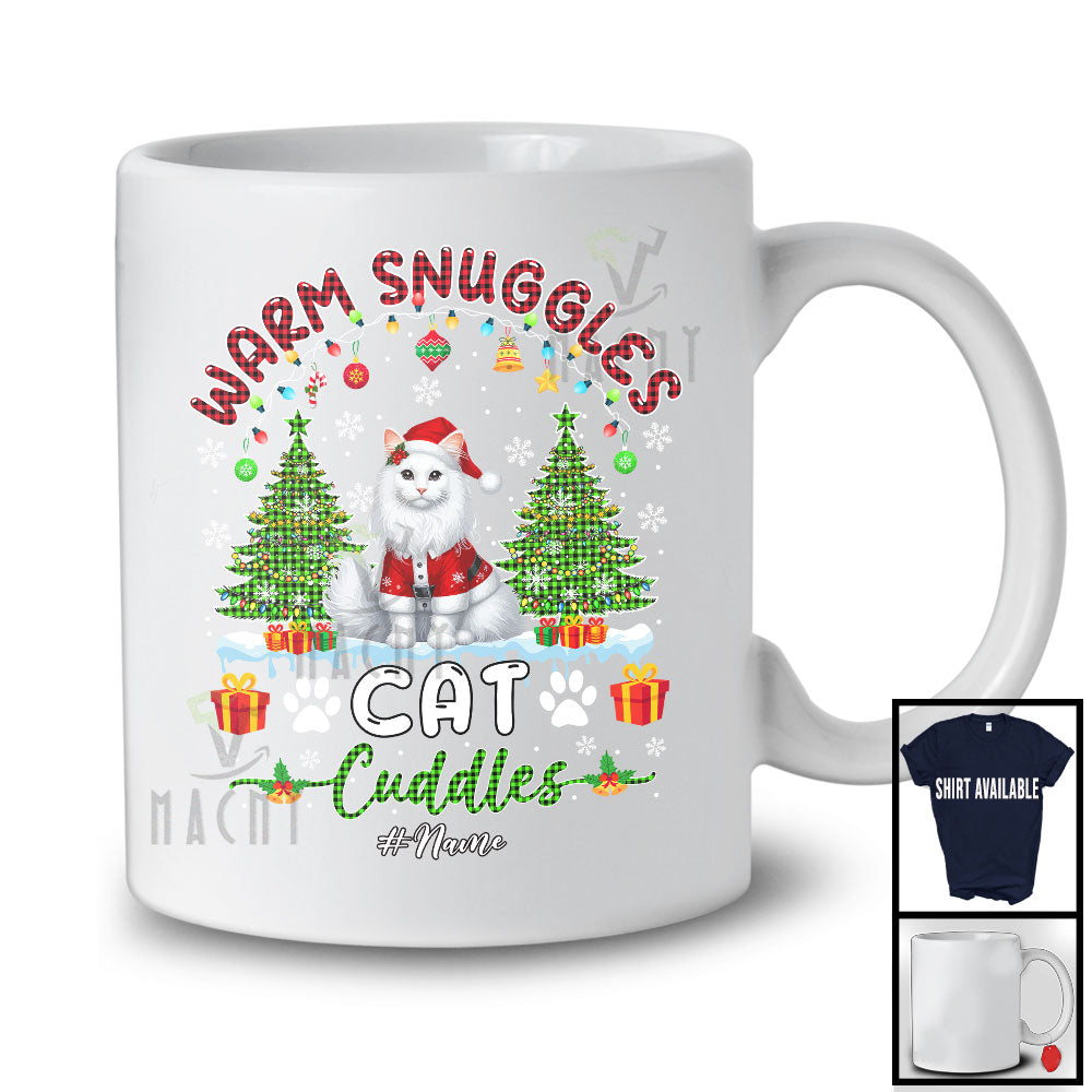 Personalized Custom Name Warm Snuggles Cat Cuddles; Fantastic Christmas Lights Tree Plaid T-Shirt. This cotton t-shirt is a durable staple product with a classic fit. One of the most popular items, it has a relaxed style made for everyday and casual wear.