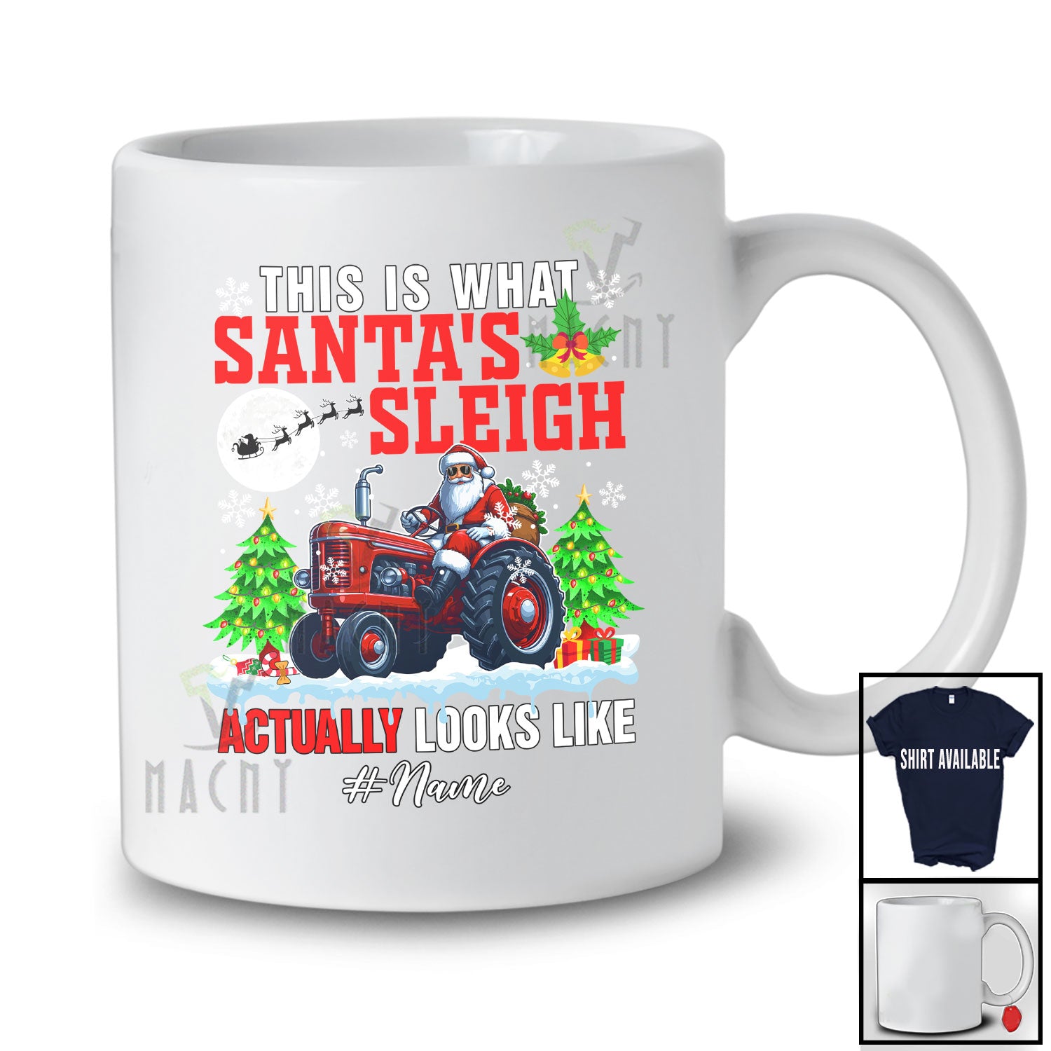Personalized Custom Name What Santa's Sleigh Look Like; Joyful Christmas Tractor Driver T-Shirt. This cotton t-shirt is a durable staple product with a classic fit. One of the most popular items, it has a relaxed style made for everyday and casual wear.