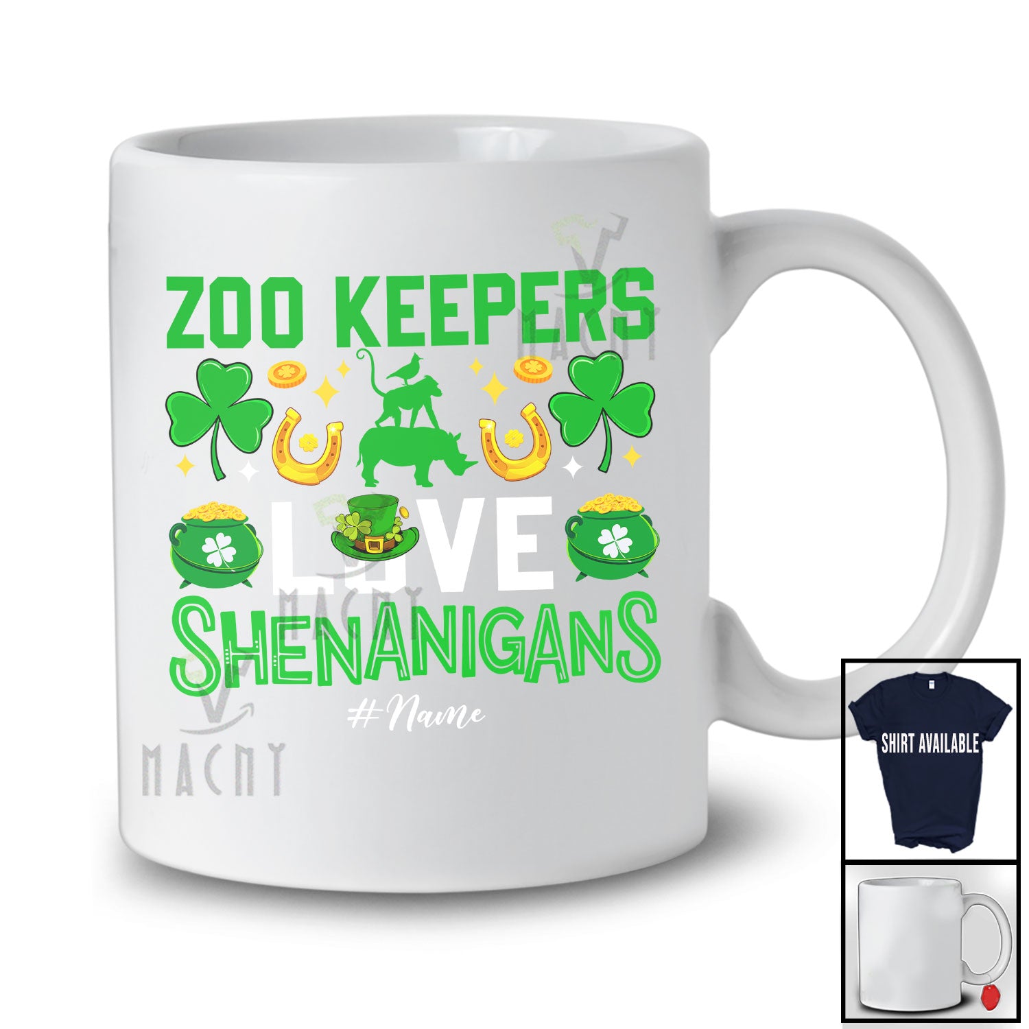 • Every product is unique, just like you. If you're looking for a product that fits the mold of your life, the Personalized Custom Name Zoo Keepers Love Shenanigans; Proud St. Patrick's Day Jobs Shamrock T-Shirt is for you.