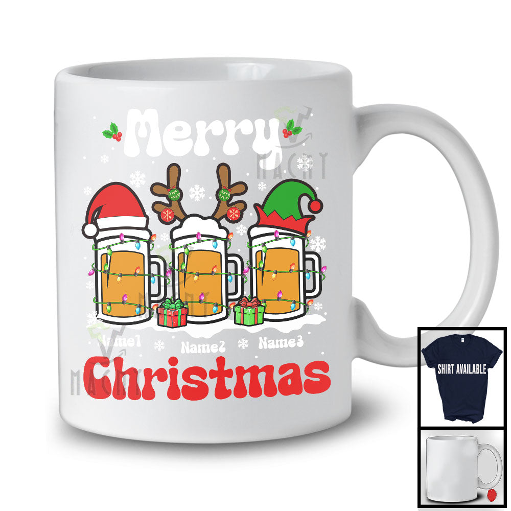 • The Personalized Custom Three Names Merry Christmas; Cheerful Three Beer Glasses; Drinking T-Shirt is a sensational customer favorite, and we hope you like it just as much.