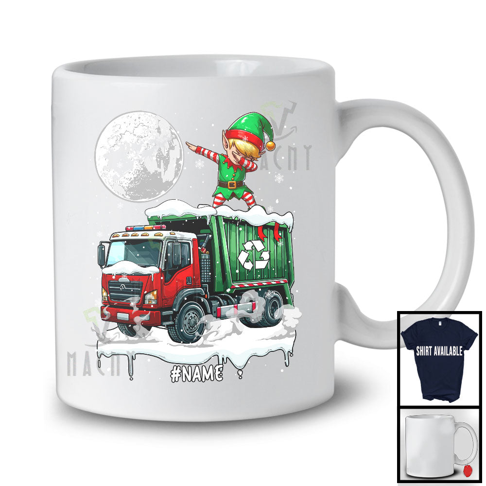 Personalized Dabbing Elf On Garbage Truck; Joyful Christmas Custom Name Elf; Garbage Truck Driver T-Shirt