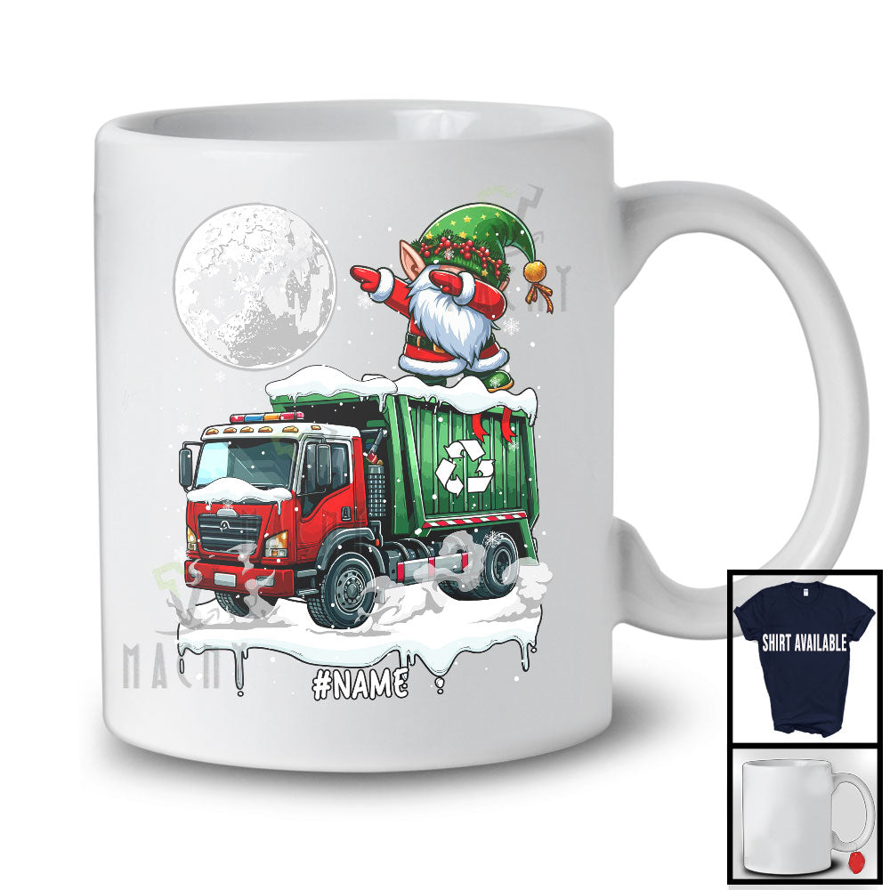 Personalized Dabbing Gnome On Garbage Truck; Joyful Christmas Custom Name; Garbage Truck Driver T-Shirt. This cotton t-shirt is a durable staple product with a classic fit. One of the most popular items, it has a relaxed style made for everyday and casual wear.
