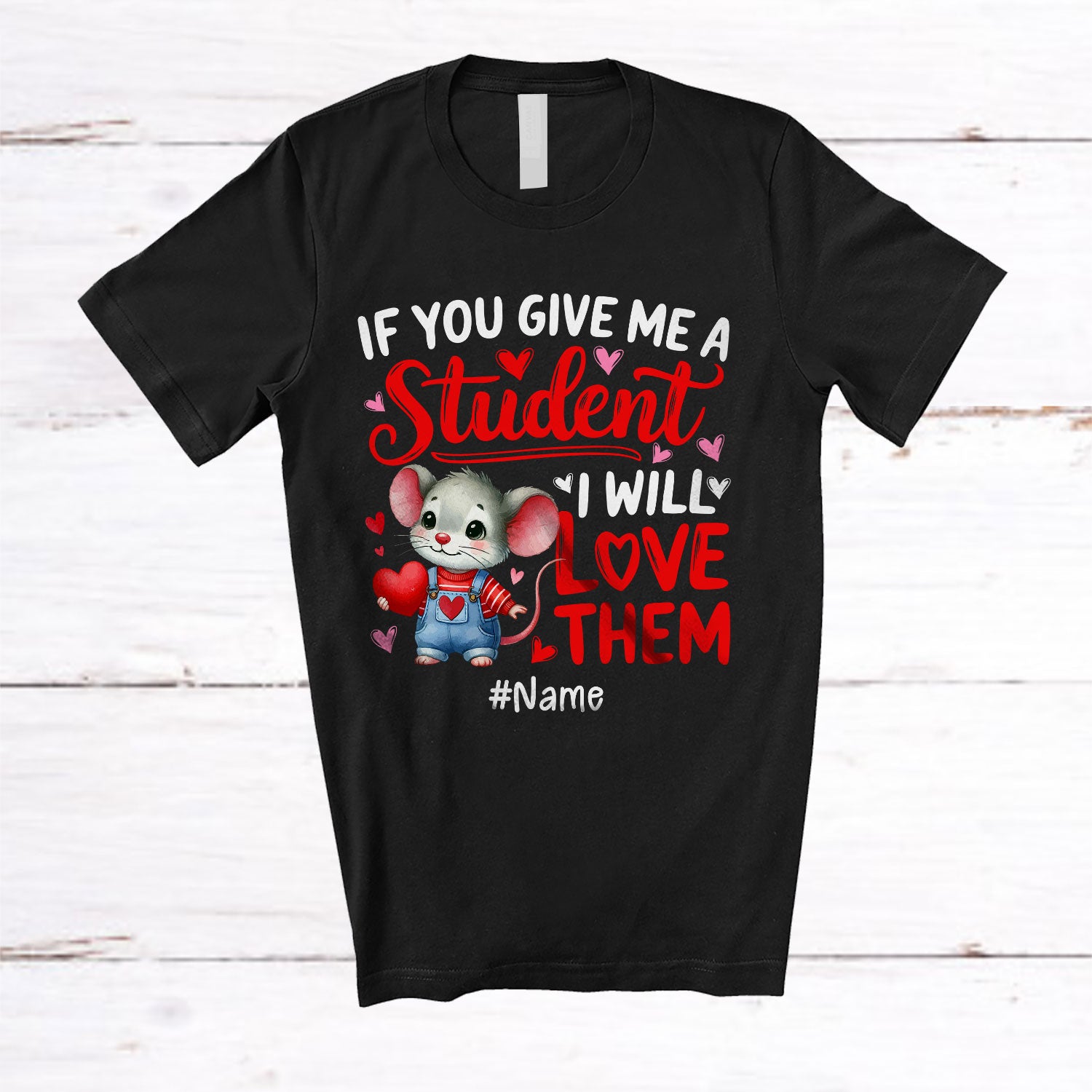 Personalized Give Me A Student I Will Love Them; Lovely Valentine Mouse; Custom Name Teacher T-Shirt