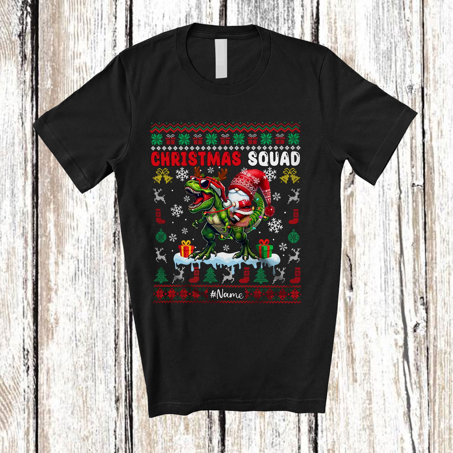 Personalized Gnome Riding T-Rex Reindeer; Joyful Christmas Sweater; T-Rex Sunglasses T-Shirt