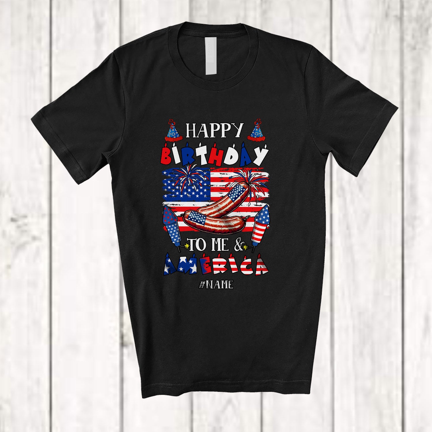 Personalized Happy Birthday America; Lovely 4th Of July Custom Name Sausage; Patriotic T-Shirt