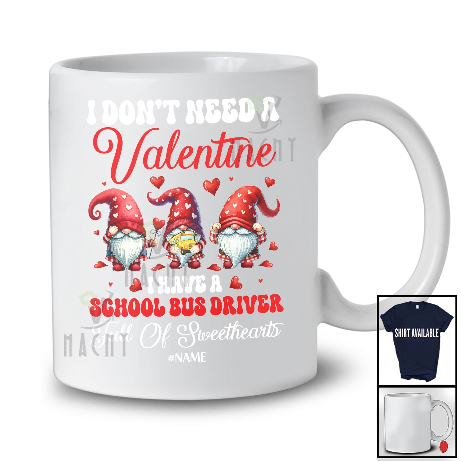 Every product is unique, just like you. If you're looking for a product that fits the mold of your life, the Personalized I Have A School Bus Driver Full of Sweethearts; Adorable Valentine Custom Name Three Gnomes T-Shirt is for you.