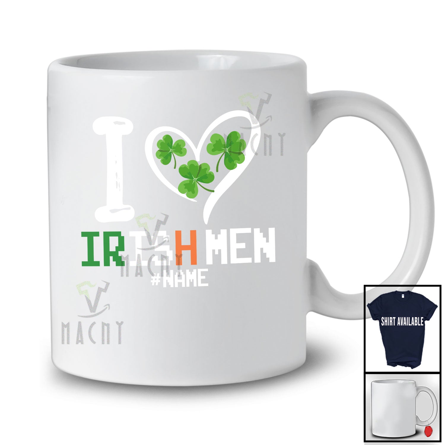 new MacnyStore - Personalized I Heart Irish Men; Lovely St. Patrick's Day Shamrocks; Custom Name Family T-Shirt – Macnystore