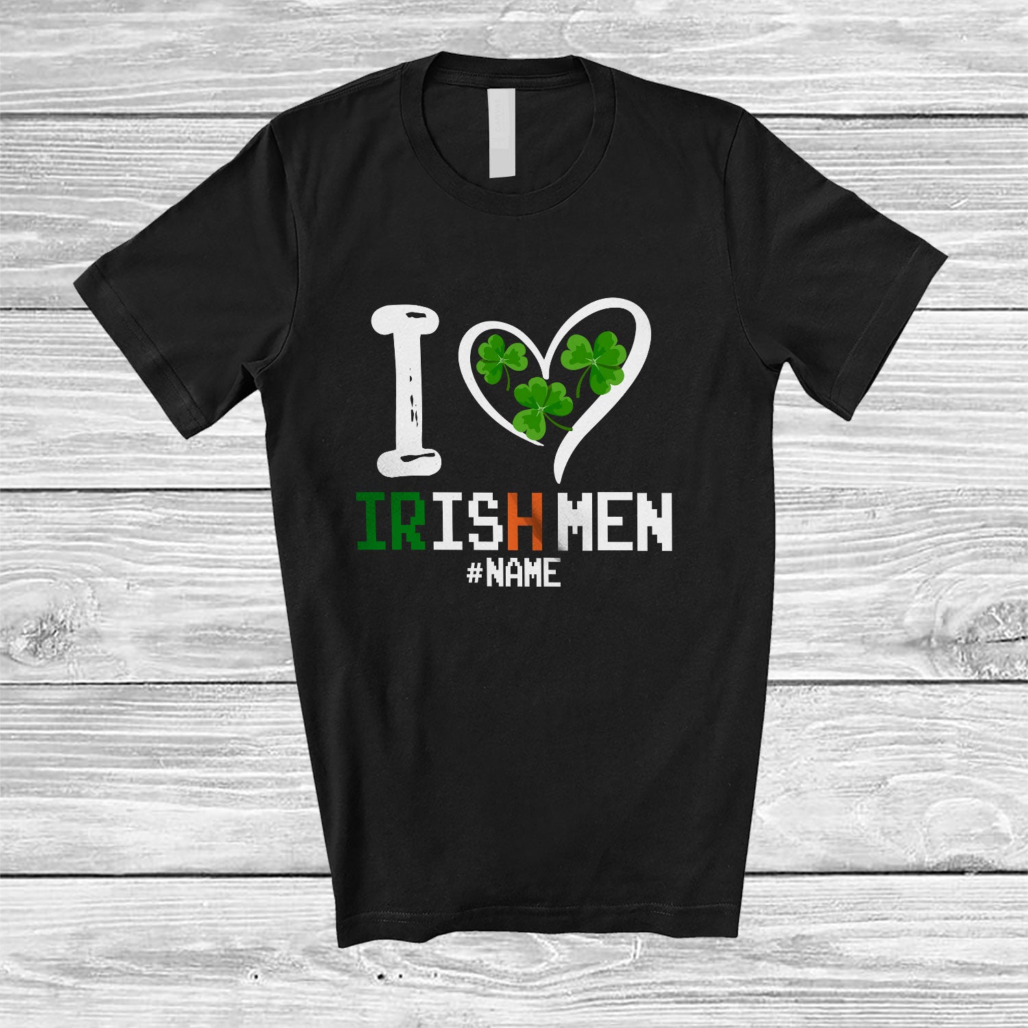 • Personalized I Heart Irish Men; Lovely St. Patrick's Day Shamrocks; Custom Name Family T-Shirt. This cotton t-shirt is a durable staple product with a classic fit. One of the most popular items, it has a relaxed style made for everyday and casual wear.
