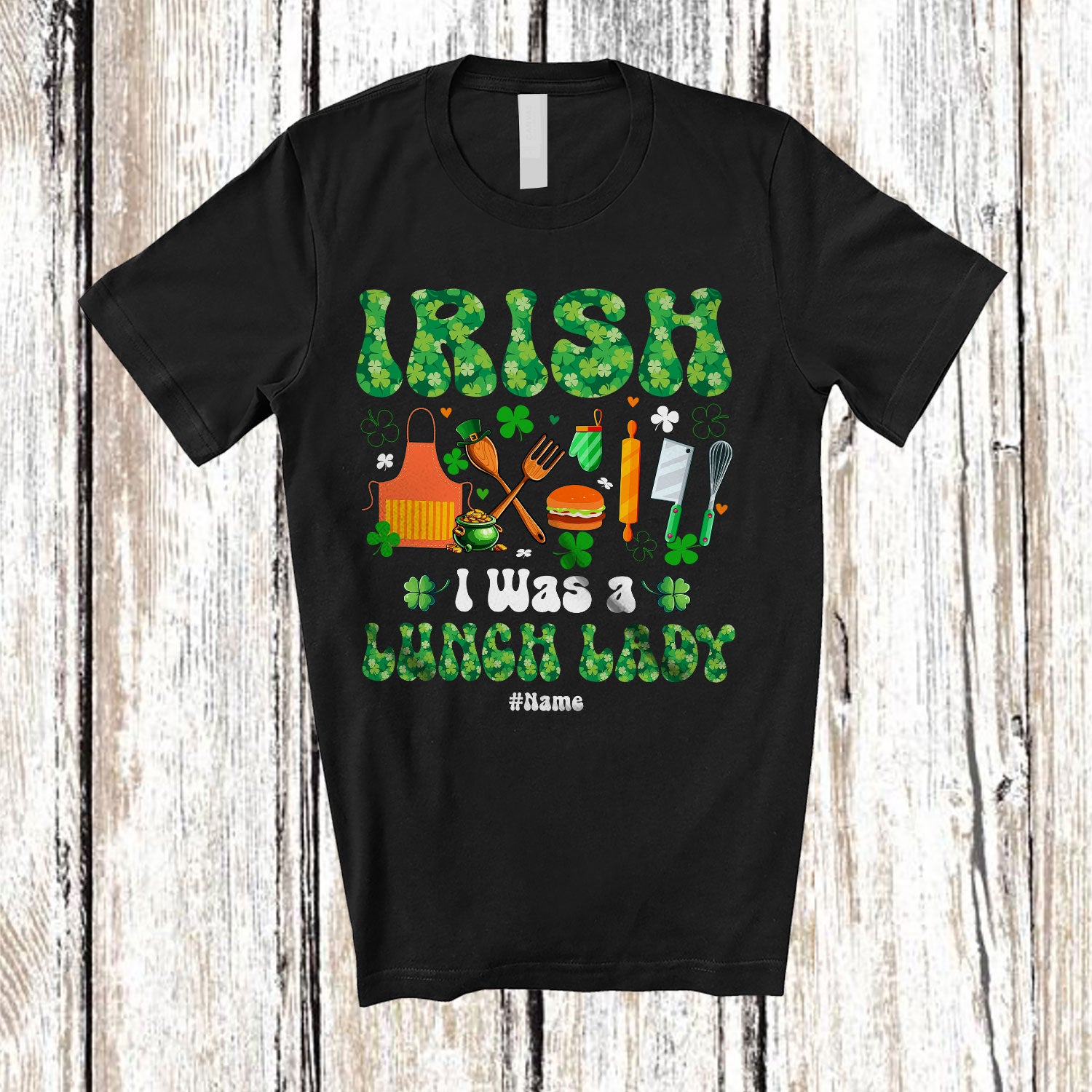 Personalized Irish I Was A Lunch Lady; Joyful St. Patrick's Day Shamrocks; Custom Name Job T-Shirt. This cotton t-shirt is a durable staple product with a classic fit. One of the most popular items, it has a relaxed style made for everyday and casual wear.