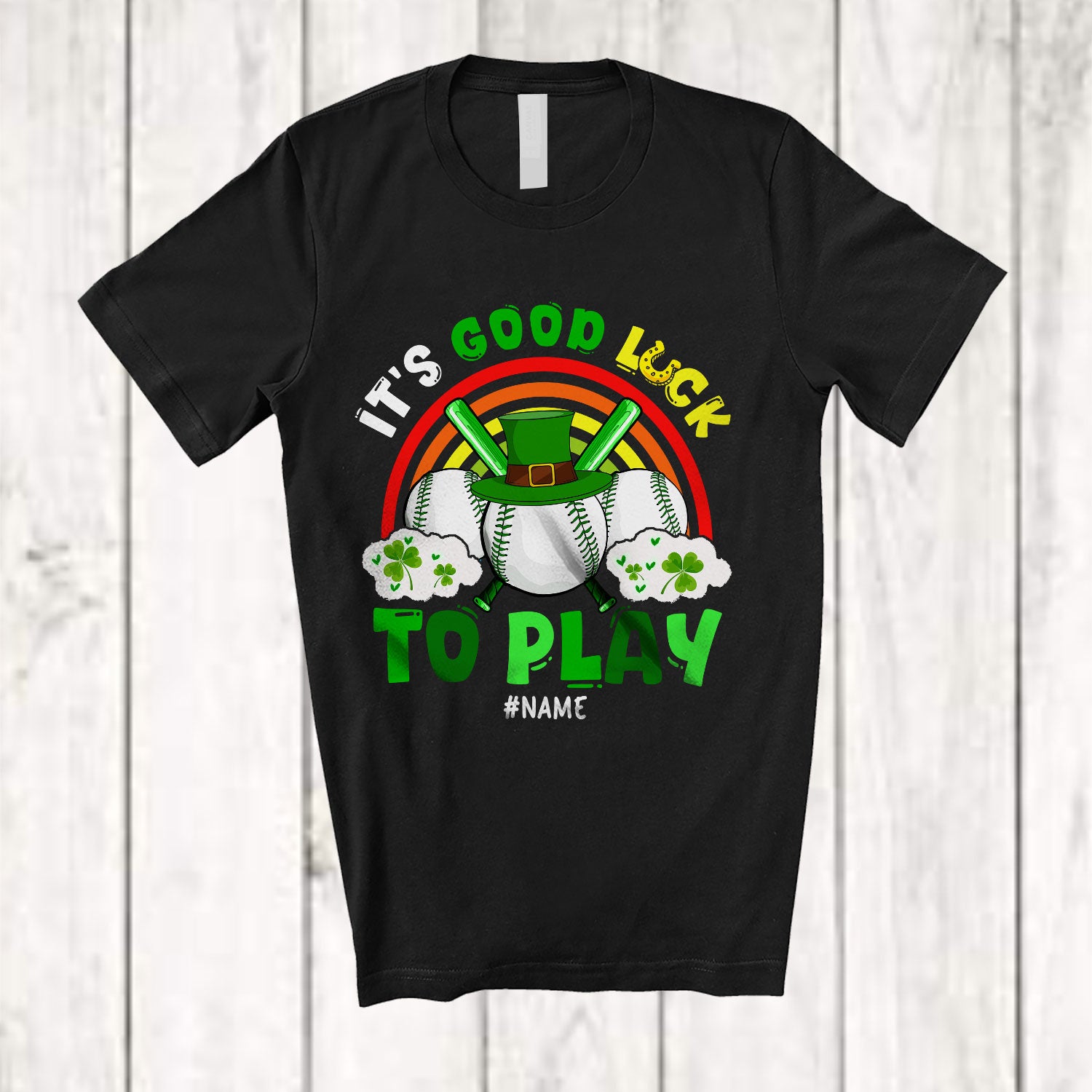 Personalized It's Good Luck to Play; Amazing St. Patrick's Day Rainbow Custom Name Baseball Player T-Shirt