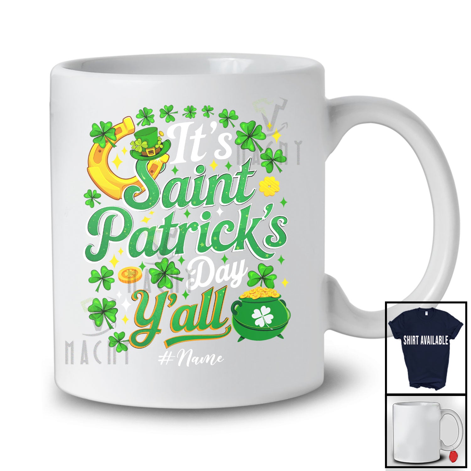 • Personalized It's Saint Patrick's Day Y'all; Amazing Shamrocks Horseshoes; Custom Name Family T-Shirt. This cotton t-shirt is a durable staple product with a classic fit. One of the most popular items, it has a relaxed style made for everyday and casual wear.