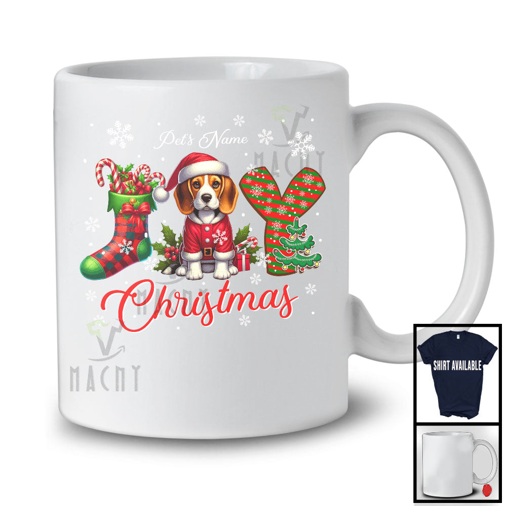 Personalized Joy Christmas, Lovely Custom Name Santa Beagle, X-mas Sock Tree Snowing T-Shirt