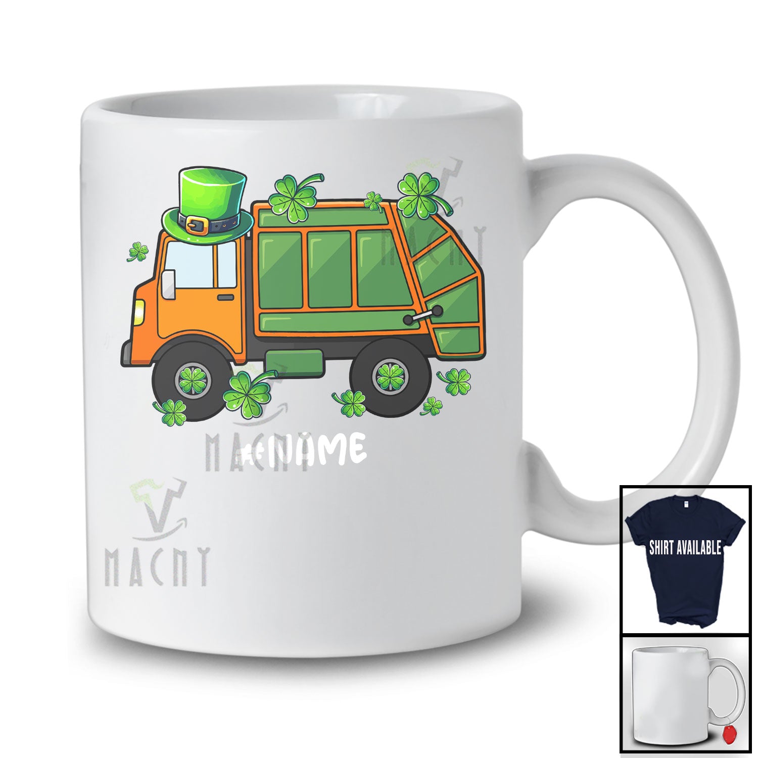 Personalized Leprechaun Garbage Truck; Joyful St. Patrick's Day Custom Name Boys Driver T-Shirt. This cotton t-shirt is a durable staple product with a classic fit. One of the most popular items, it has a relaxed style made for everyday and casual wear.