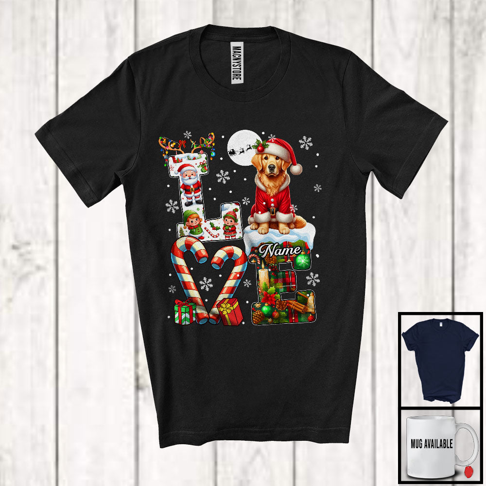 Personalized LOVE, Awesome Christmas Custom Name Golden Retriever Santa, Plaid Animal T-Shirt