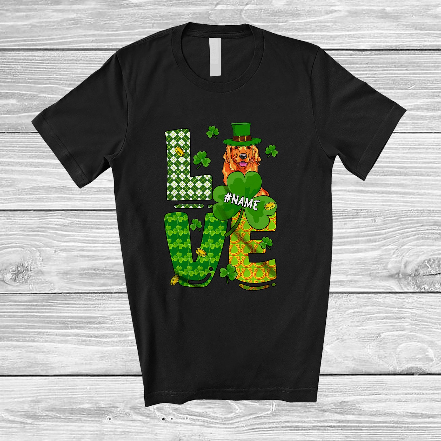 Personalized LOVE; Wonderful St. Patrick's Day Custom Name Golden Retriever Leprechaun T-Shirt