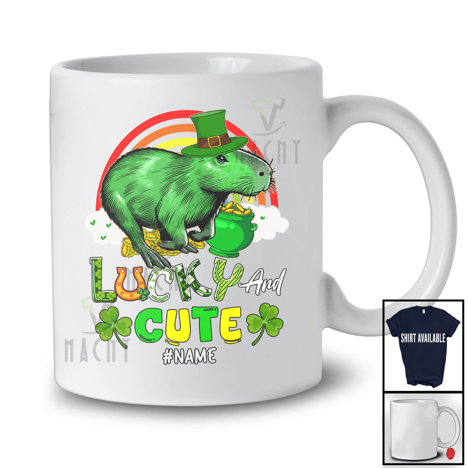 new MacnyStore - Personalized Lucky And Cute; Lovely St. Patrick's Day Custom Name Capybara; Shamrocks Rainbow T-Shirt – Macnystore