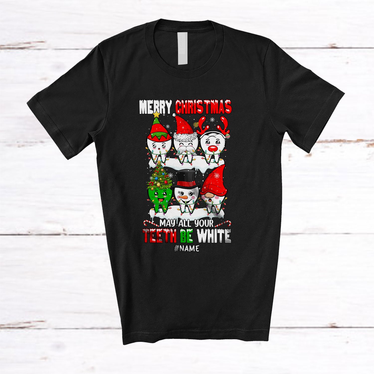 Personalized May All Your Teeth Be White; Amusing Christmas Custom Name Dental Assistant Dentist T-Shirt