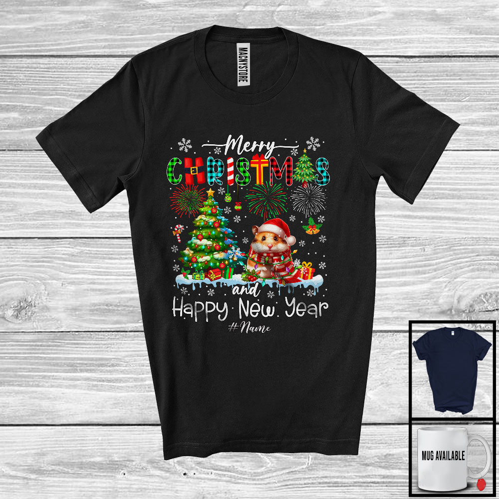 Personalized Merry Christmas And Happy New Year; Joyful Custom Name Santa Hamster Lover T-Shirt