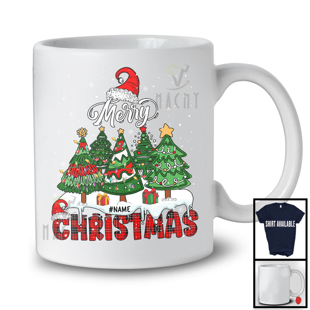 new MacnyStore - Personalized Merry Christmas; Lovely Plaid X-mas Tree Snowing; Pajama Custom Name Family T-Shirt – Macnystore