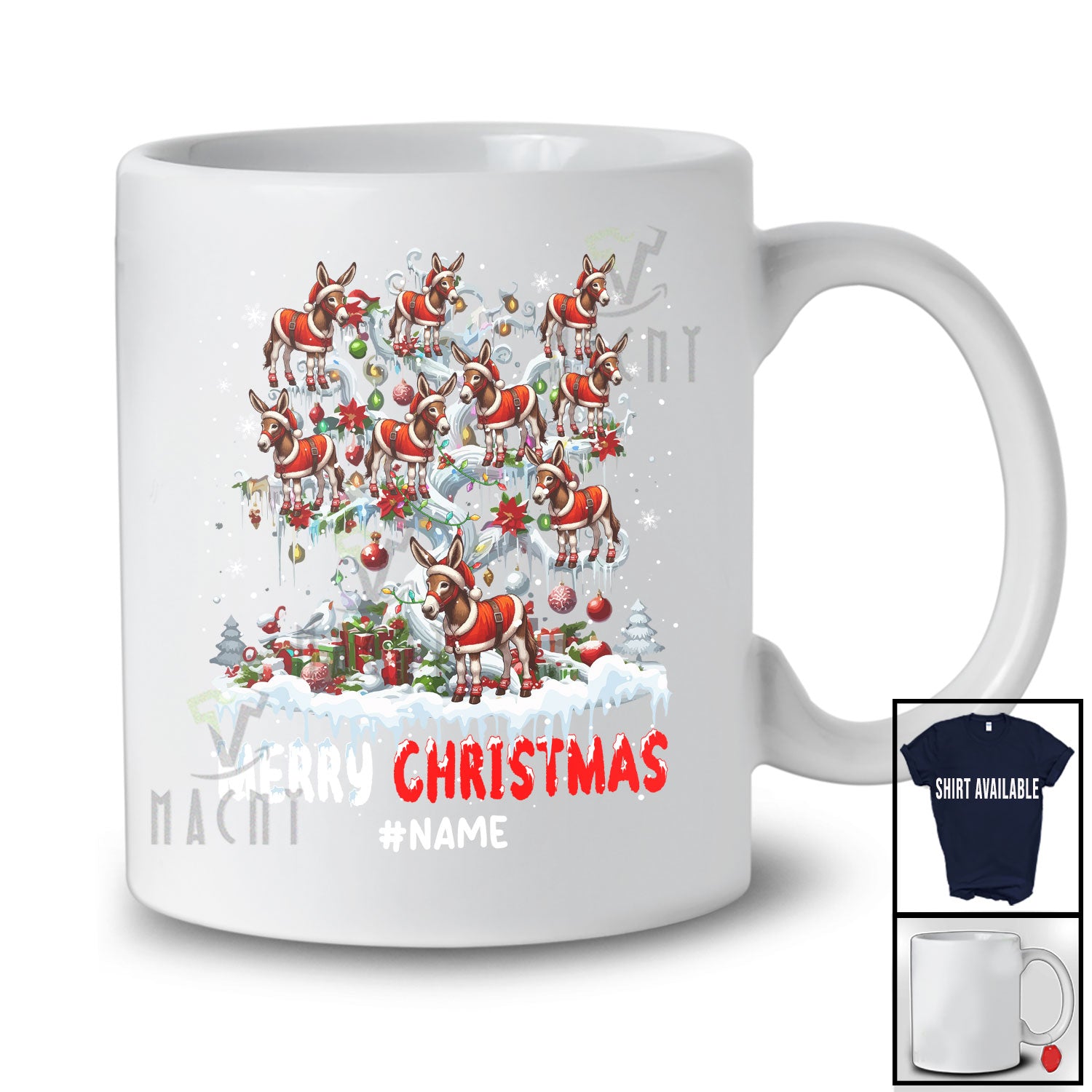 • Personalized Merry Christmas; Lovely Santa Mule On X-mas Tree; Custom Name Farmer Family T-Shirt. This cotton t-shirt is a durable staple product with a classic fit. One of the most popular items, it has a relaxed style made for everyday and casual wear.