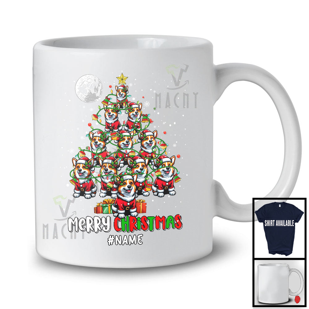 Personalized Merry Christmas; Wonderful X-mas Tree Lights Santa Corgi; Custom Name Family T-Shirt