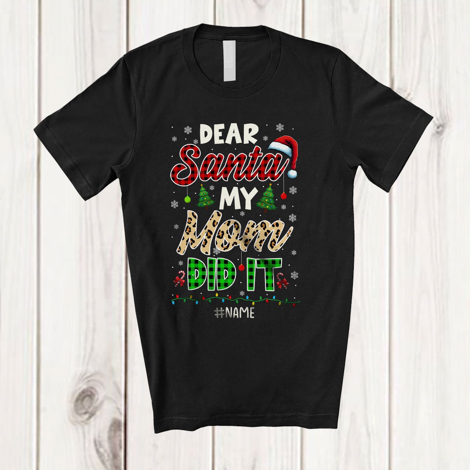 Personalized My Mom Did It; Wonderful Christmas Leopard Plaid Santa; Custom Name Family T-Shirt