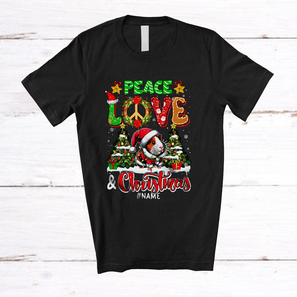 Personalized Peace Love And Christmas; Joyful Custom Name Santa Guinea Pig; Peace Sign T-Shirt