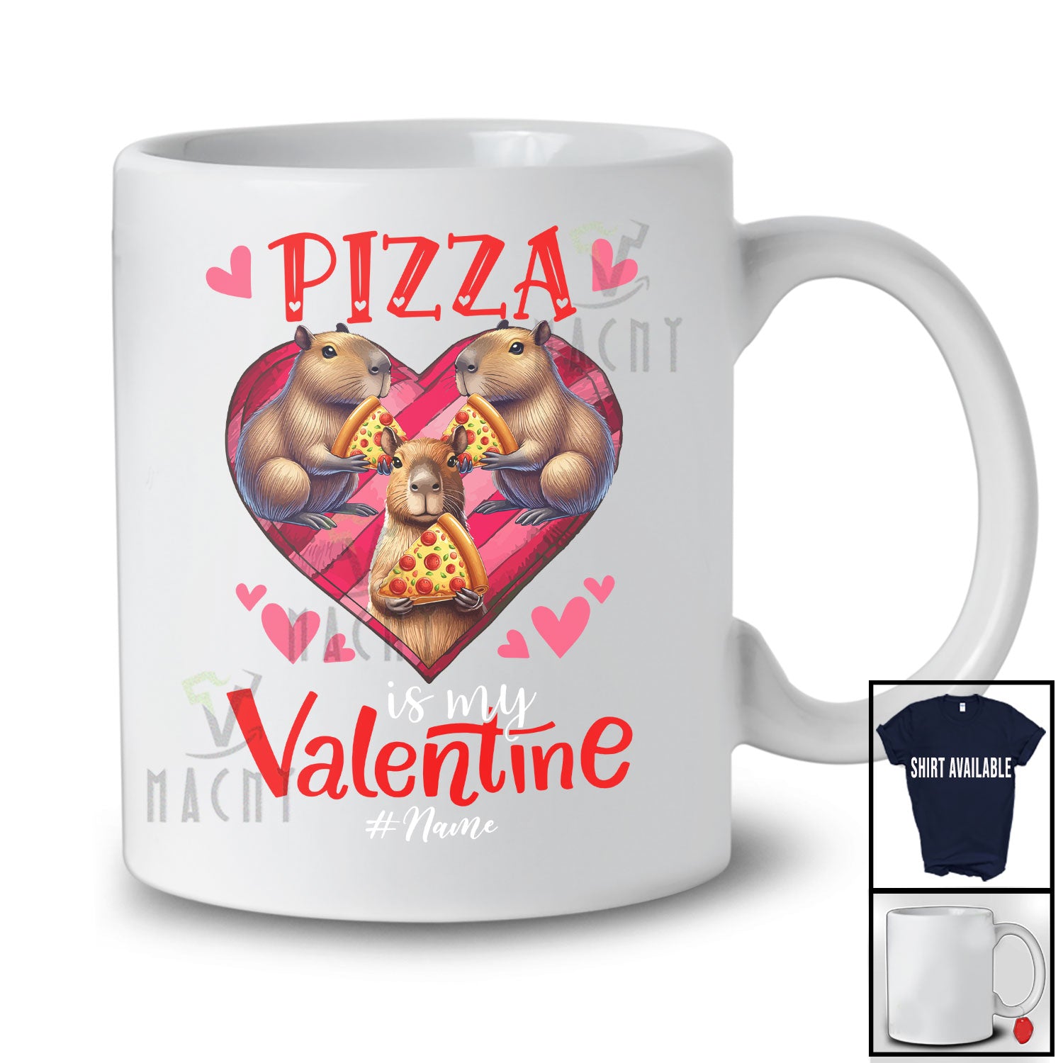 • The Personalized Pizza is my Valentine; Lovely Capybara Eating Pizza Hearts; Custom Name Single T-Shirt is evocative, to say the least, but that's why you're drawn to it in the first place.