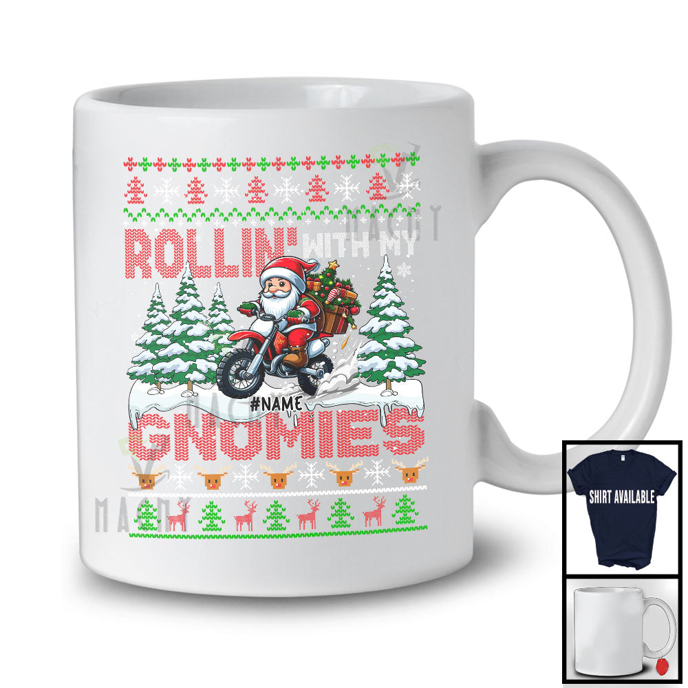 Personalized Rollin' With My Gnomies; Fantastic Christmas Sweater Custom Name Gnome Dirt Bike T-Shirt