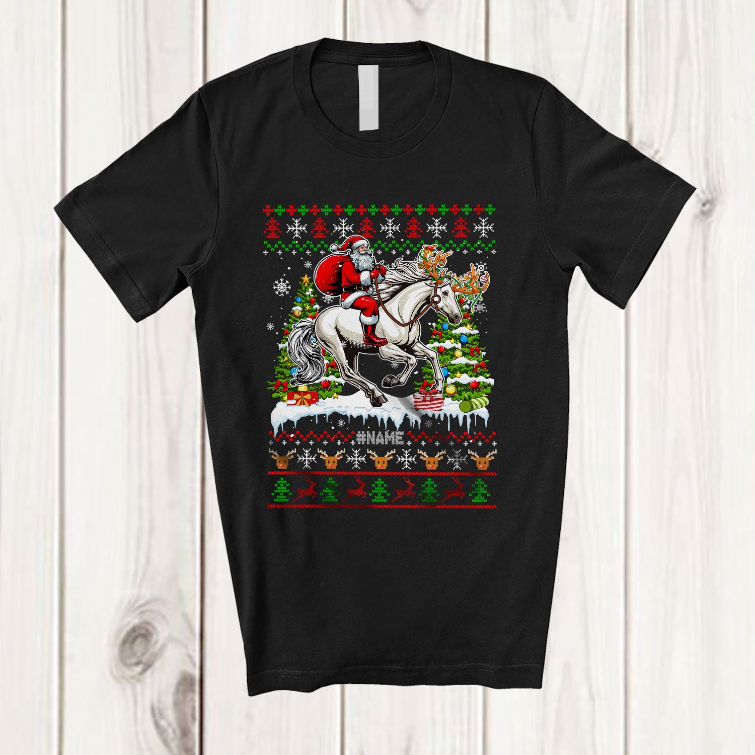 Personalized Santa Riding Horse; Amusing Christmas Sweater Horse; Custom Name Farmer Farm T-Shirt