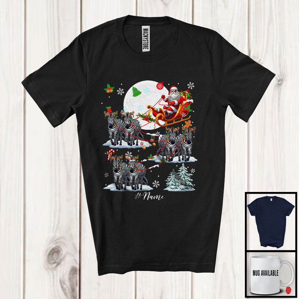 Personalized Santa Riding Reindeer Zebra Sleigh; Awesome Christmas Moon; Animal Family T-Shirt