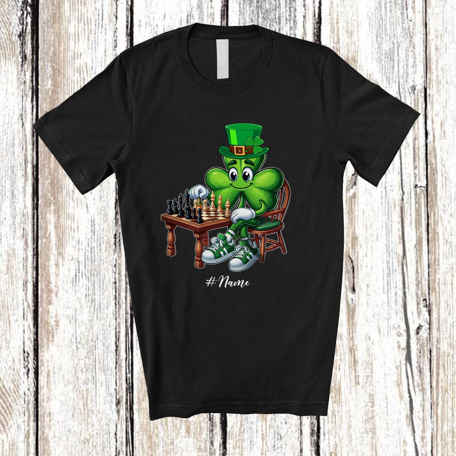 Personalized Shamrock Playing Chess; Amusing St. Patrick's Day Irish; Custom Name Sport Player T-Shirt