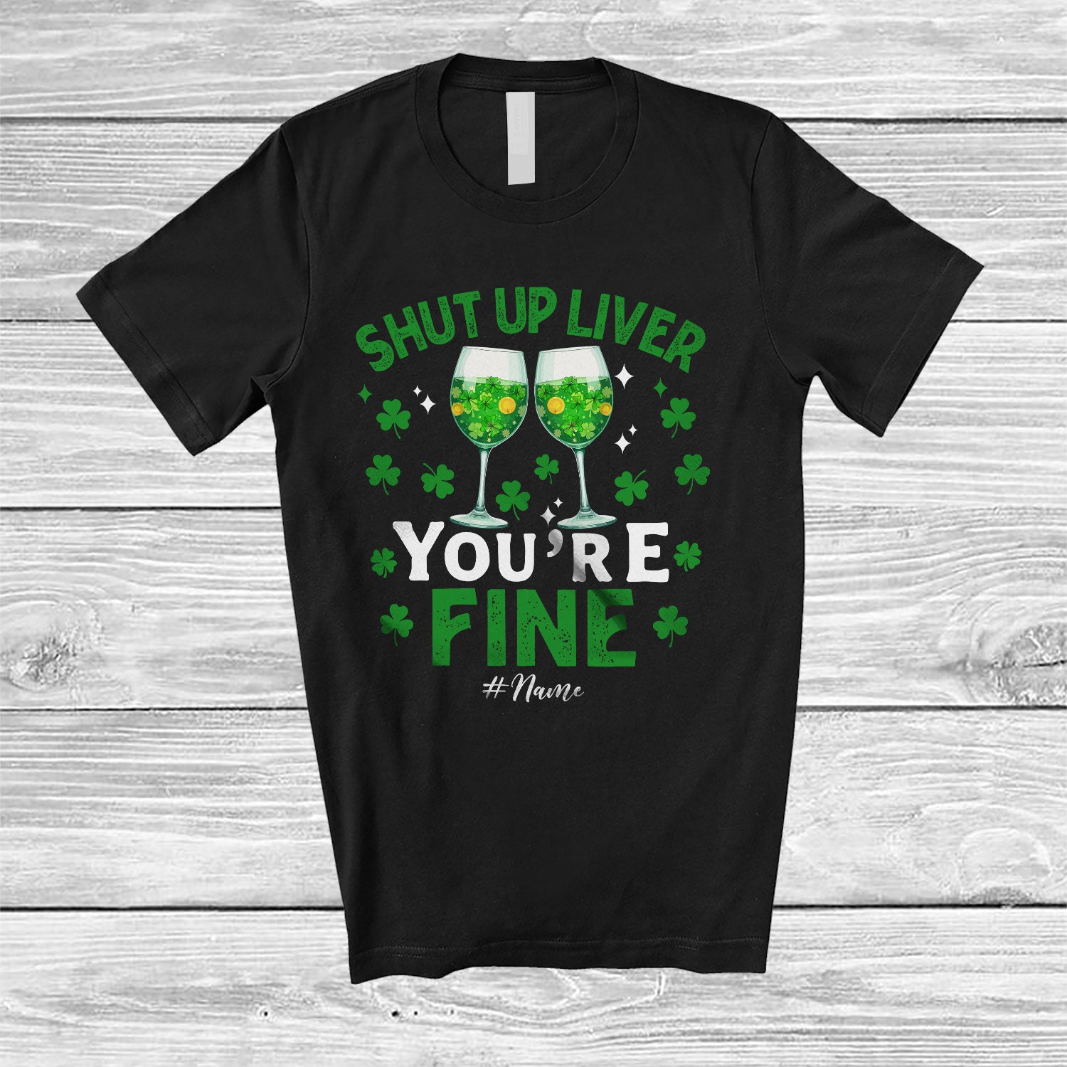 Personalized Shut Up Liver You're Fine; Cheerful St. Patrick's Day Wine Custom Name Drinking T-Shirt