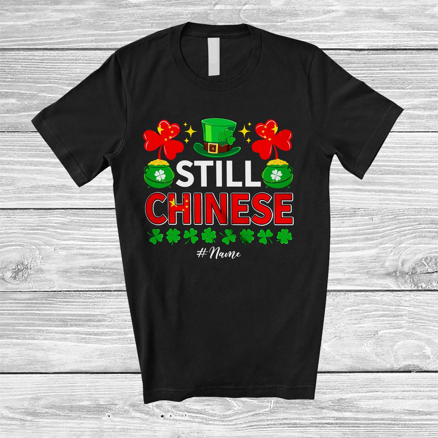 Personalized Still Chinese; Lovely St. Patrick's Day Custom Name Leprechaun Chinese Flag; Family T-Shirt. This cotton t-shirt is a durable staple product with a classic fit. One of the most popular items, it has a relaxed style made for everyday and casual wear.