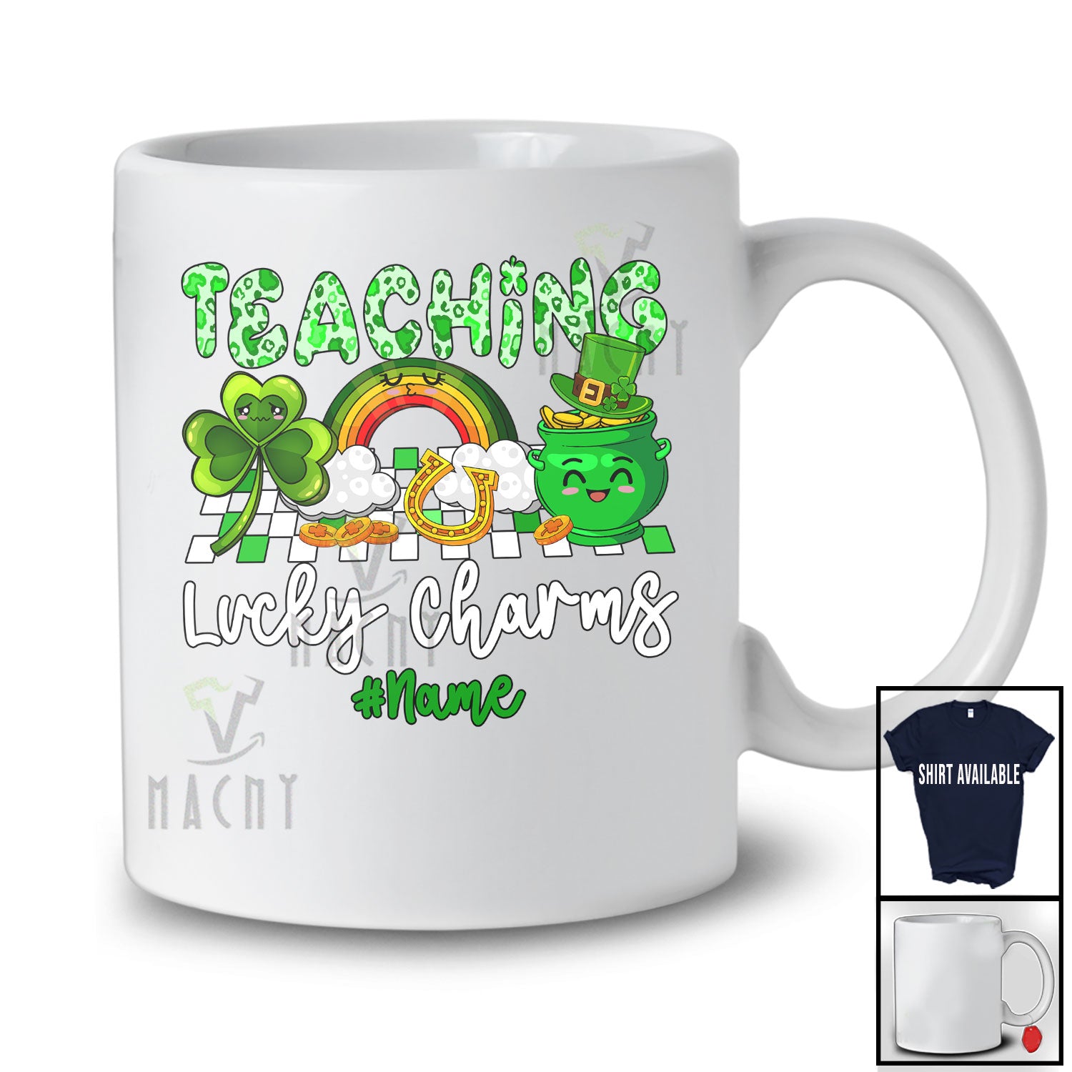 new MacnyStore - Personalized Teaching Lucky Charms; Lovely St. Patrick's Day Leopard Shamrocks; Custom Name Teacher T-Shirt – Macnystore