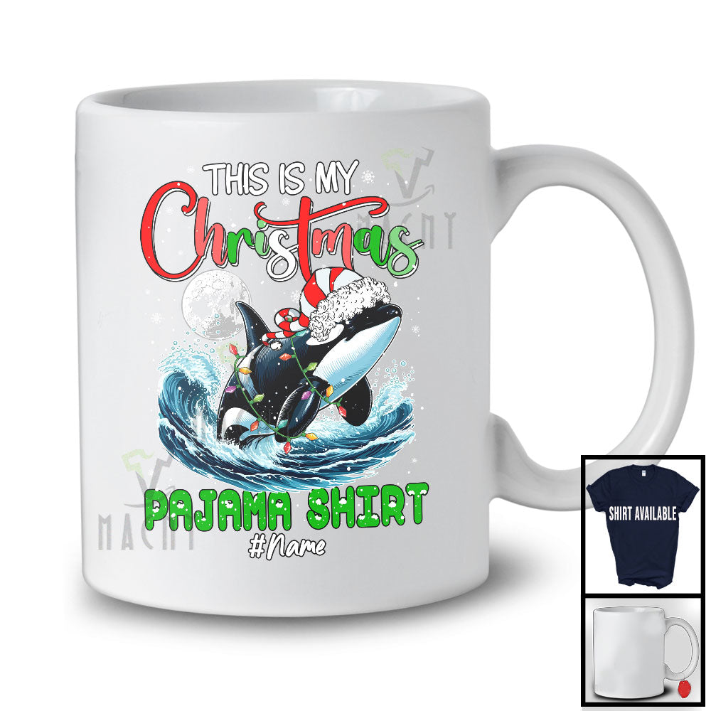 Personalized This Is My Christmas Pajama Shirt; Merry X-mas Elf Orca; Custom Name Sea Animal T-Shirt
