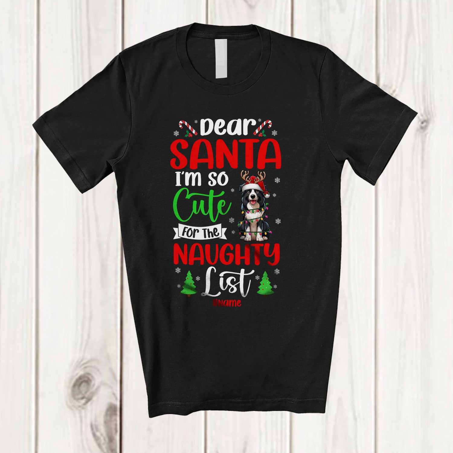 Personalized Too Cute For Santa's Naughty List; Amusing Christmas Custom Name Border Collie T-Shirt