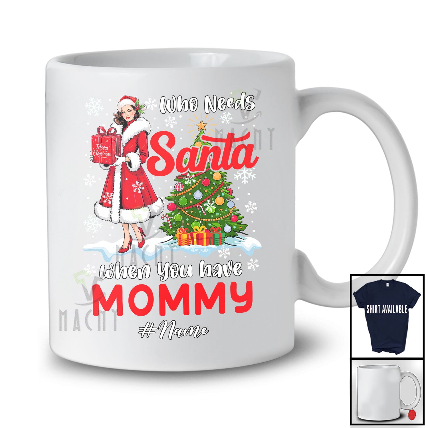 Personalized Who Needs Santa When You Have Mommy; Joyful Christmas Tree Custom Name Family T-Shirt