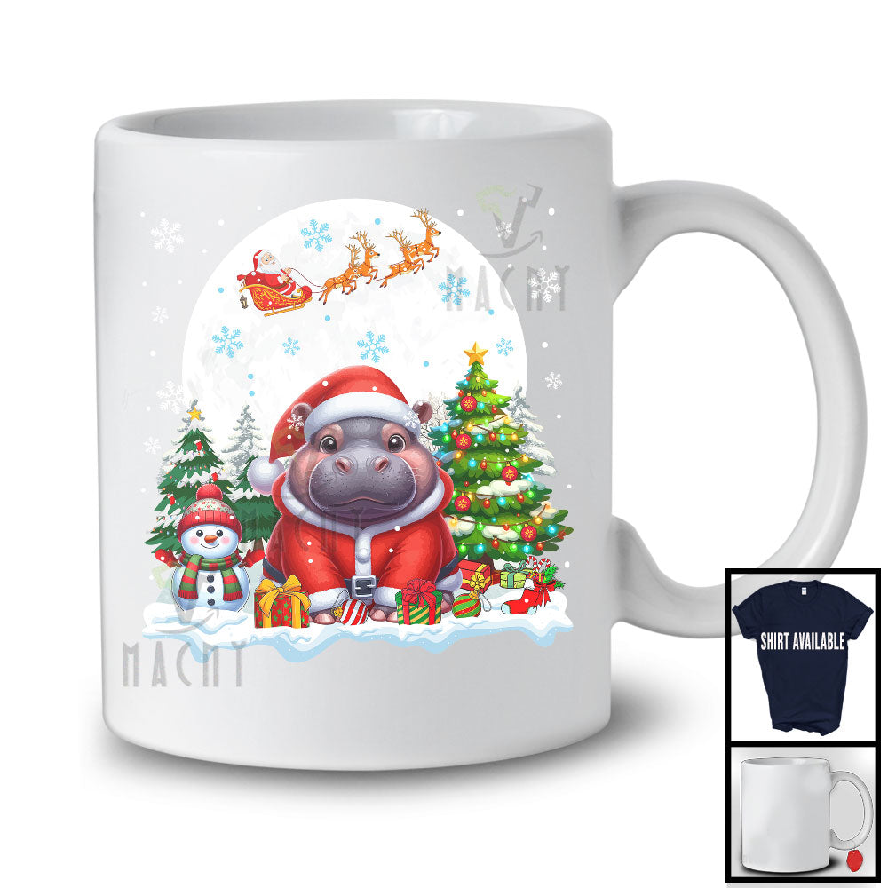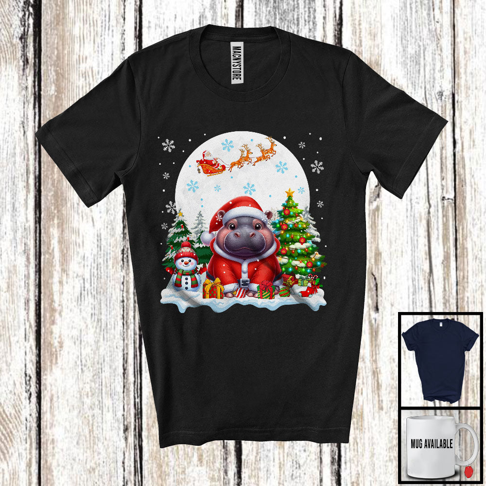 new MacnyStore - Santa Hippo With X-mas Tree Snowman, Adorable Christmas Santa Wild Animal, Family Group T-Shirt – Macnystore