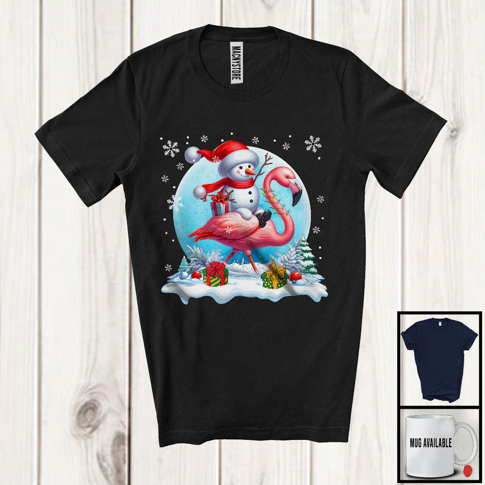 Snowman Riding Flamingo; Awesome Christmas Lights Snowing Lover; X-mas Family Group T-Shirt
