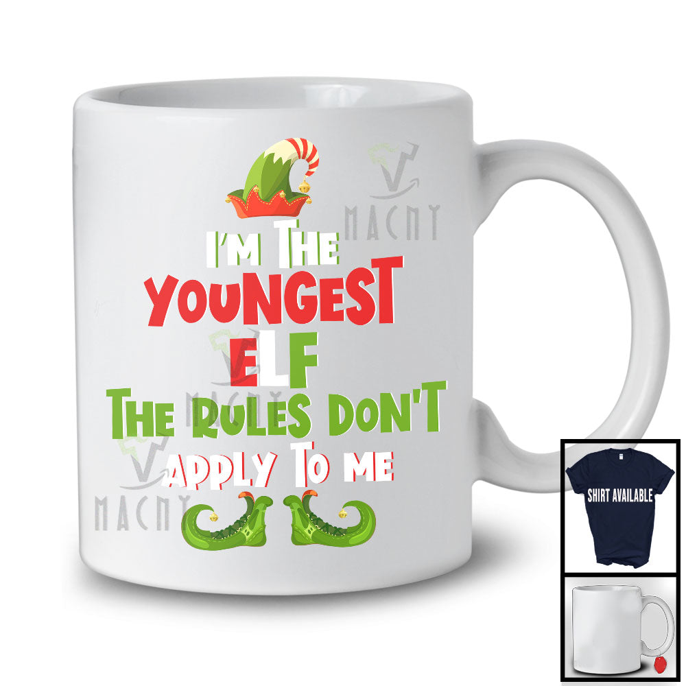 The Youngest Elf The Rules Don't Apply To Me; Fantastic Christmas Elf Lover; Cousin Family T-Shirt. This cotton t-shirt is a durable staple product with a classic fit. One of the most popular items, it has a relaxed style made for everyday and casual wear.
