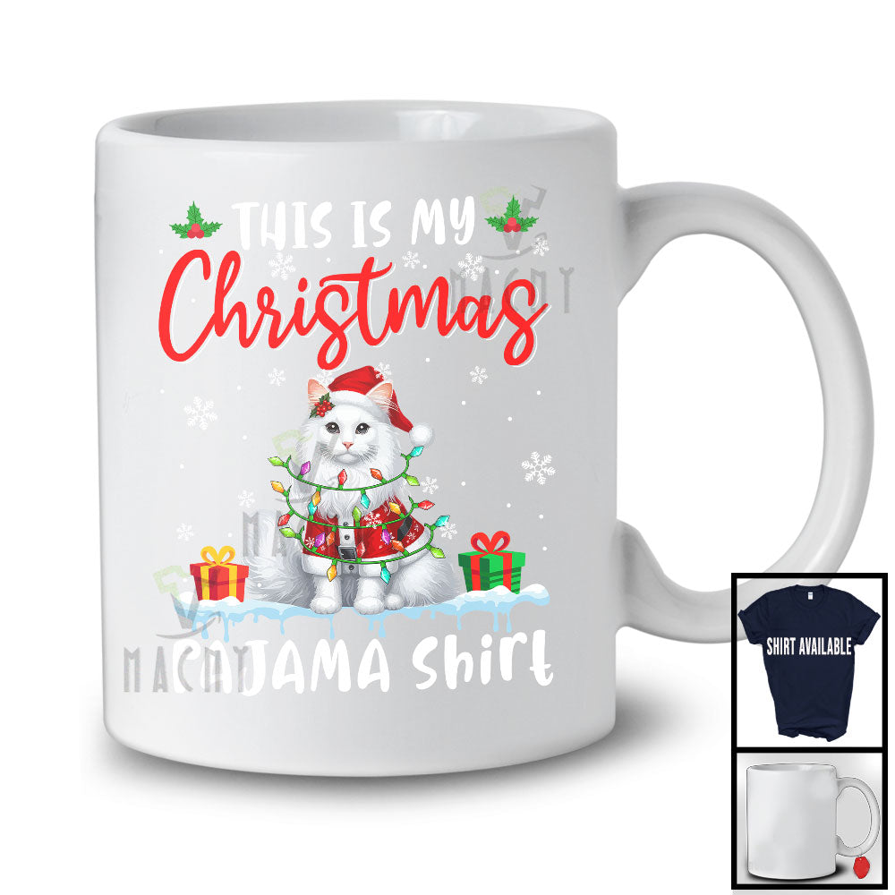 This Is My Christmas Pajama Shirt; Amusing X-mas Lights Lovely Santa Cat; Animal Lover T-Shirt