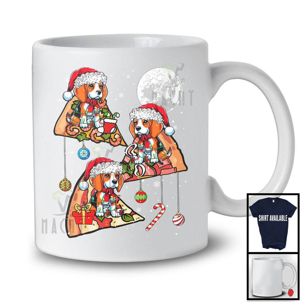 Three Santa Beagle Riding Pizza; Humorous Christmas Pizza Food Galaxy; Family Group T-Shirt