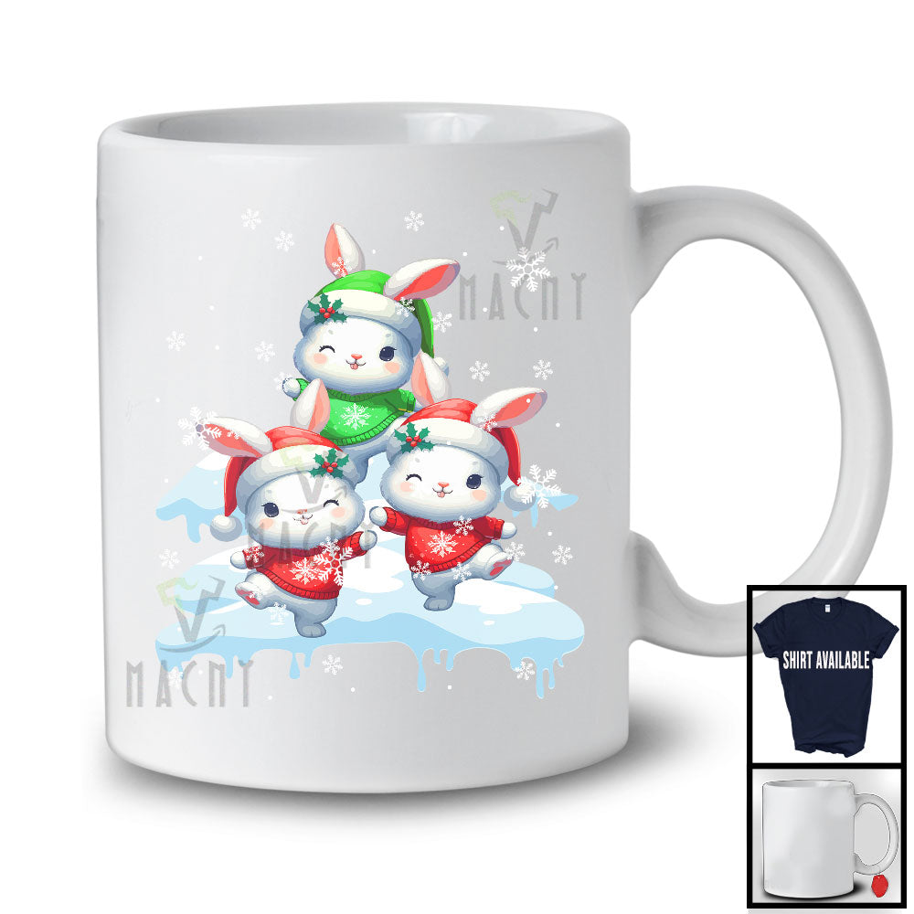 Three Santa Elf Bunnies On Snow; Adorable Christmas Snowing Bunny Lover; Family Group T-Shirt