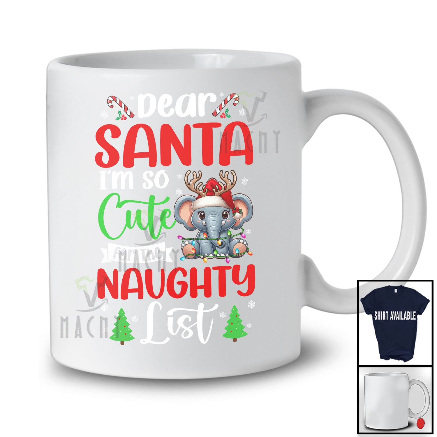 Too Cute For The Naughty List; Lovely Christmas Santa Reindeer Elephant Owner; Family T-Shirt. This cotton t-shirt is a durable staple product with a classic fit. One of the most popular items, it has a relaxed style made for everyday and casual wear.