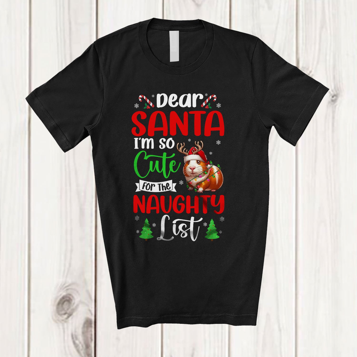 Too Cute For The Naughty List; Lovely Christmas Santa Reindeer Guinea Pig Owner; Family T-Shirt. This cotton t-shirt is a durable staple product with a classic fit. One of the most popular items, it has a relaxed style made for everyday and casual wear.