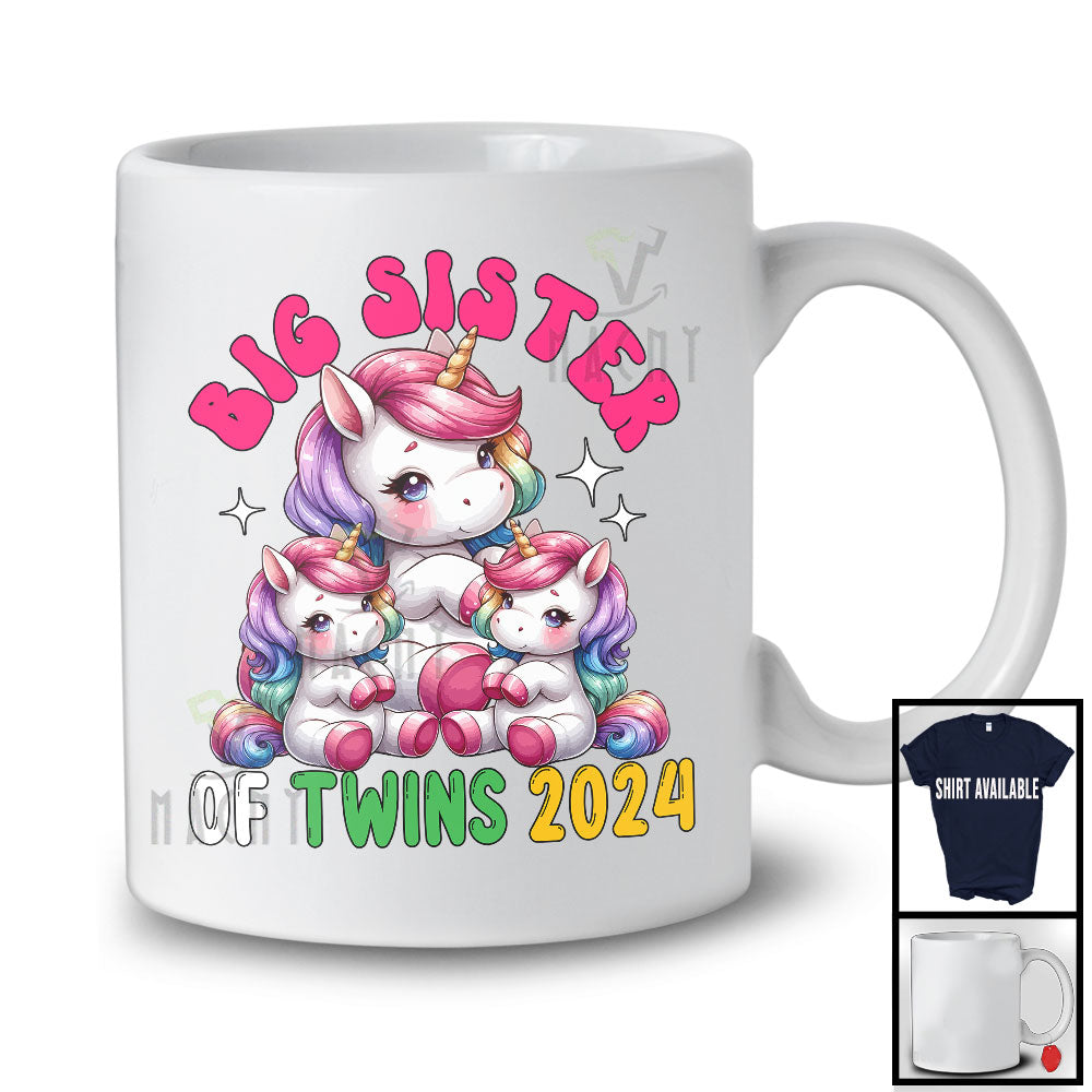 Big Sister Of Twins 2024; Awesome Pregnancy Announcement New Sister Unicorn; Family T-Shirt